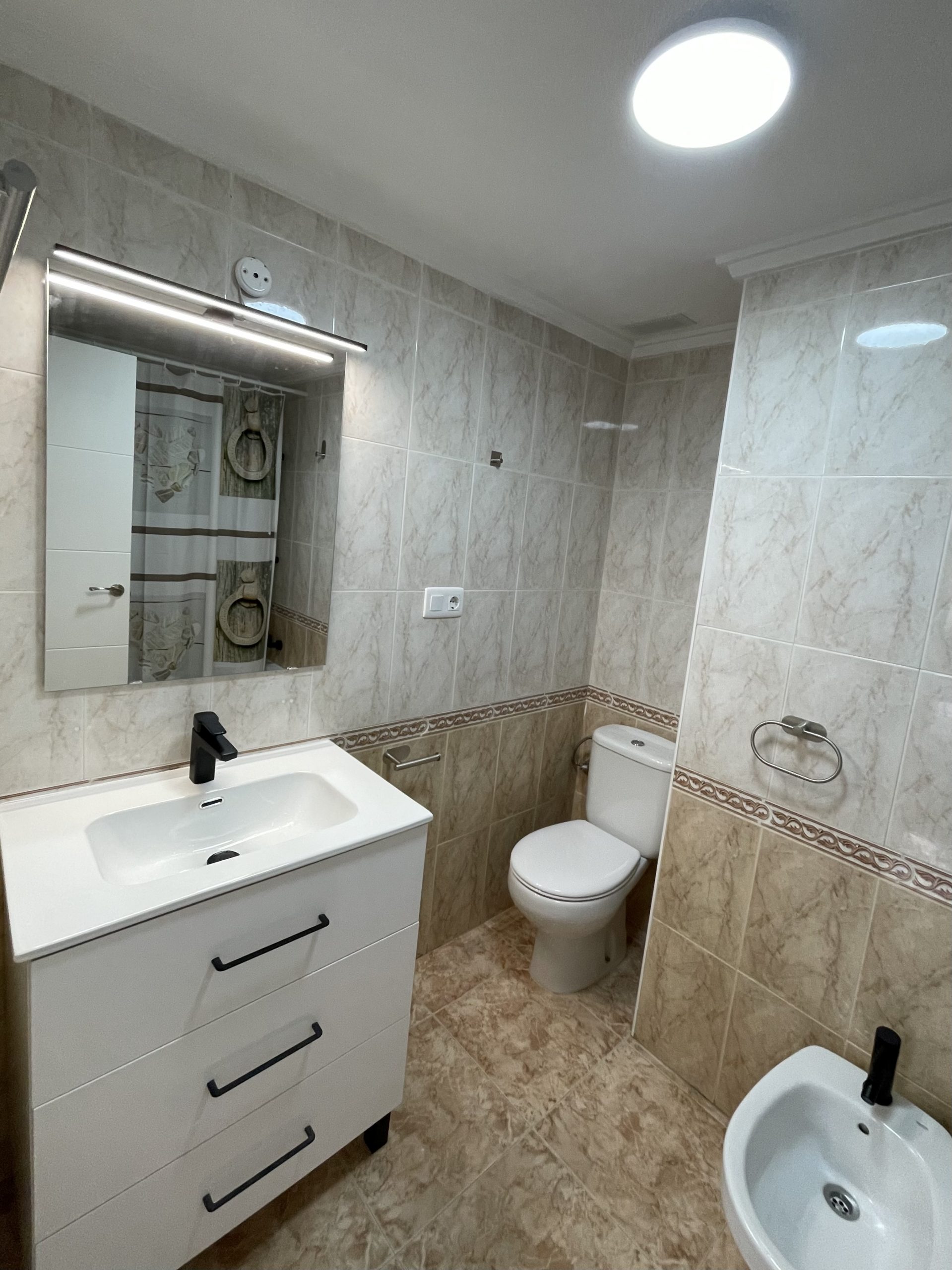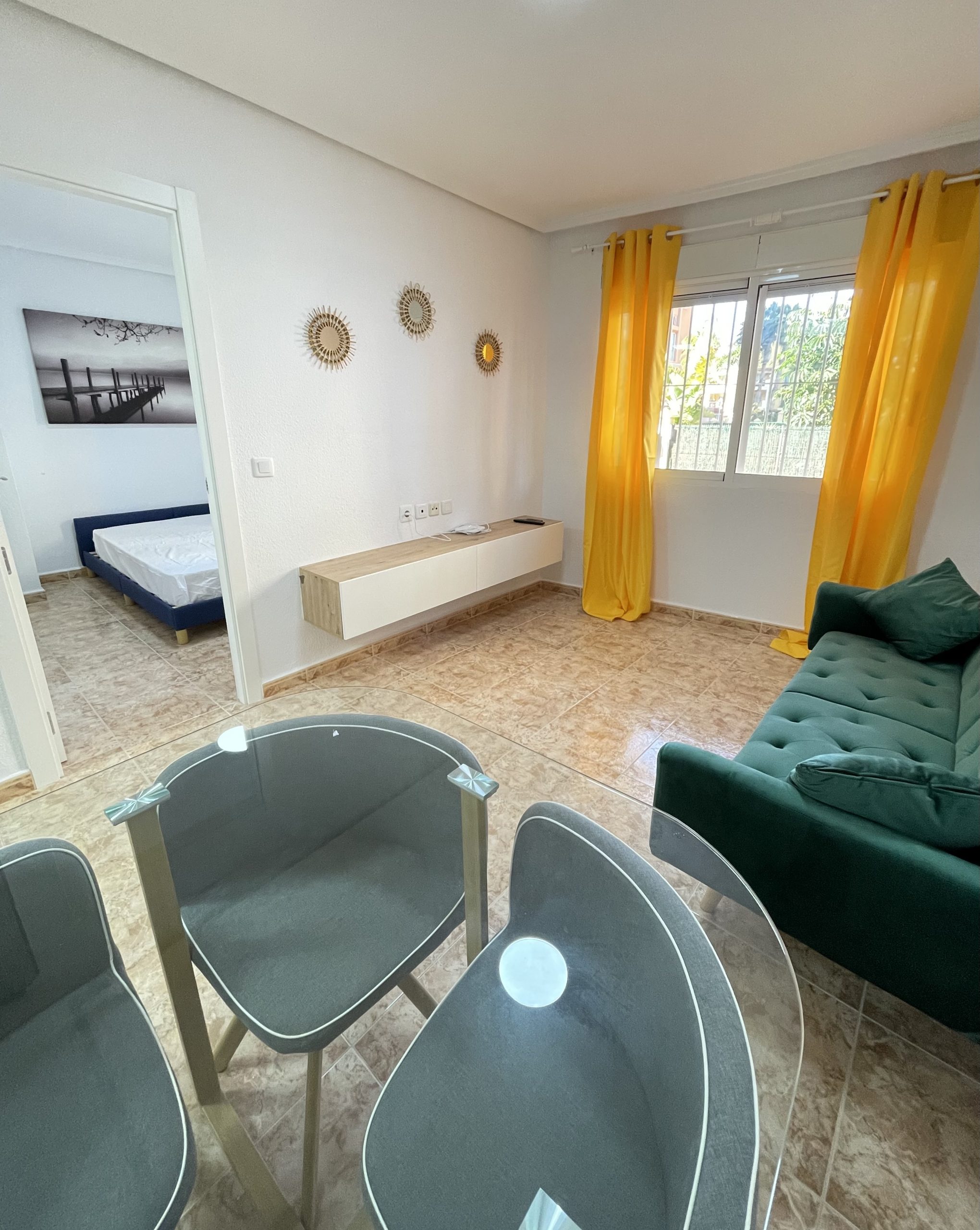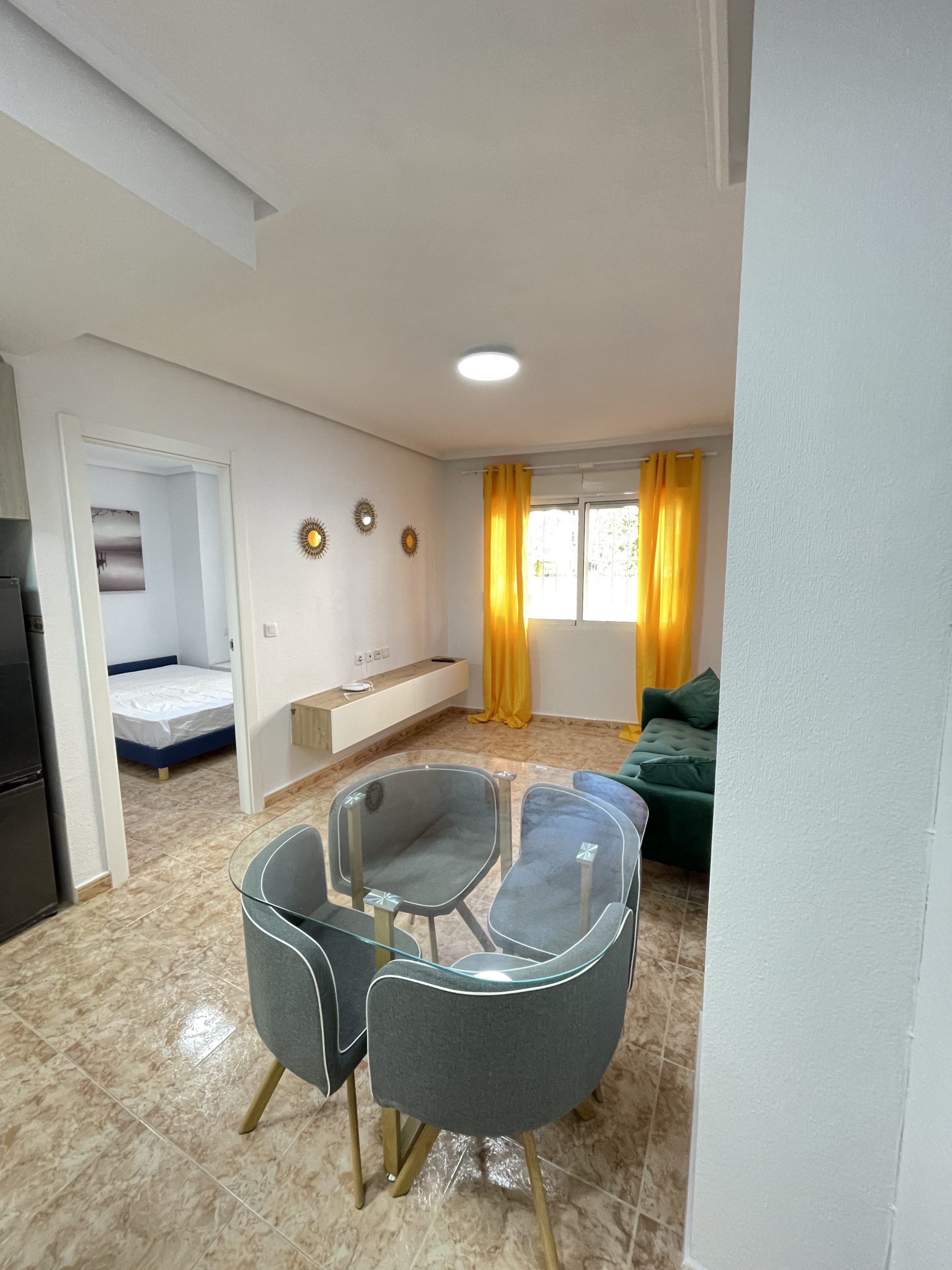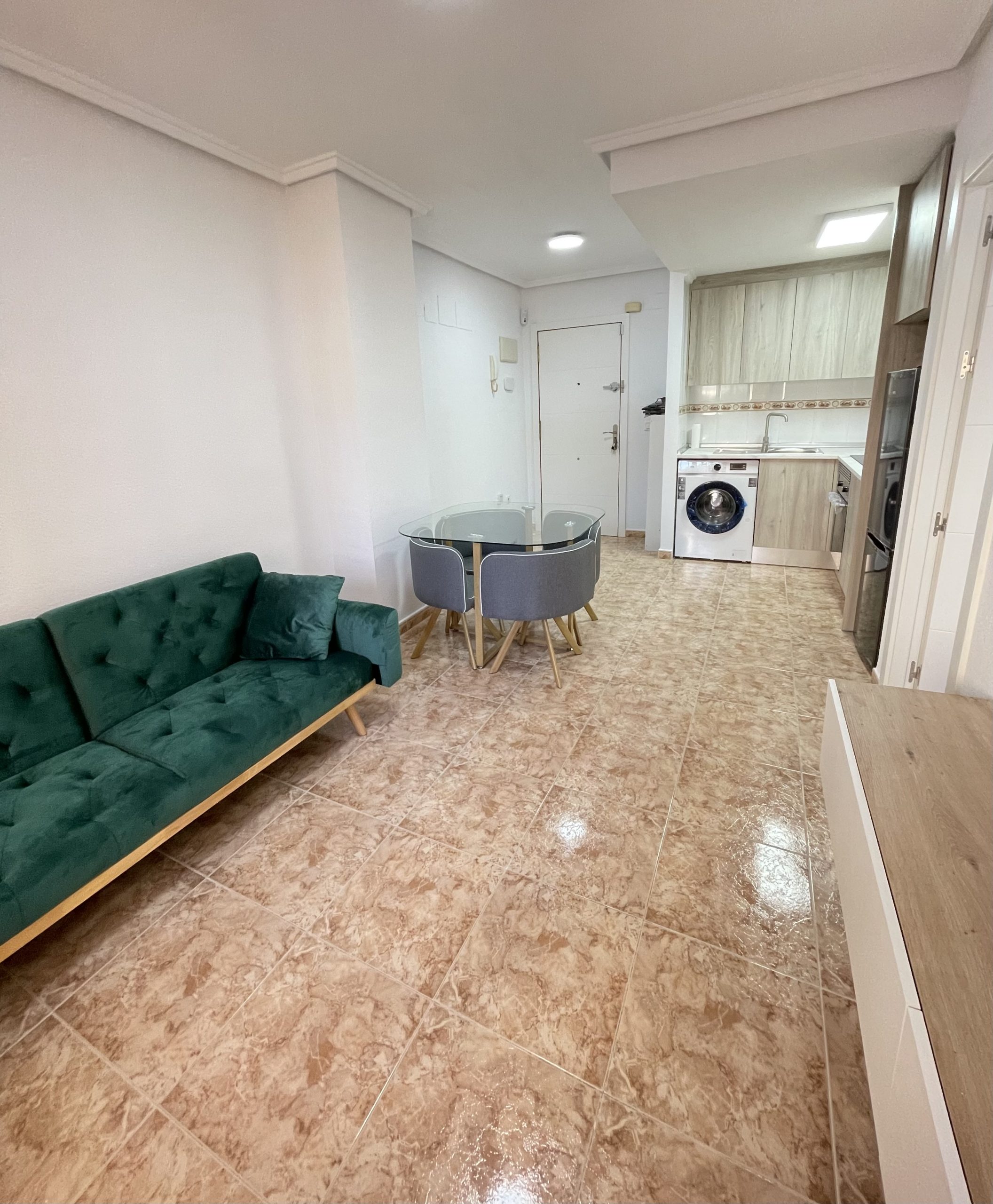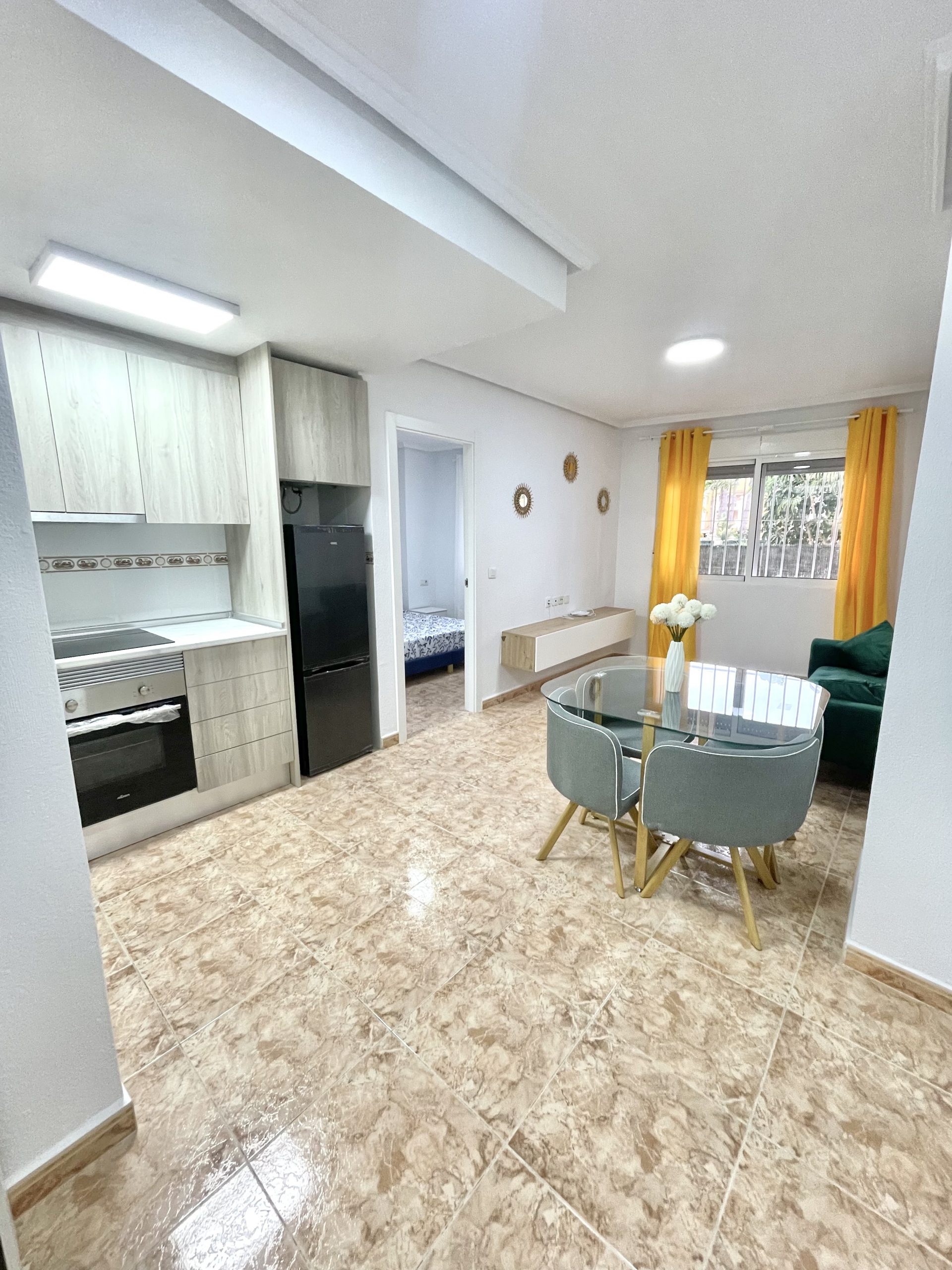 Se trata de un apartamento de 1 dormitorio, baño en suite. Soleado, de unos 40m2, listo para entrar a vivir o para alquilar. Completamente equipado, con electrodomésticos a estrenar, vitrocerámica de inducción. Se encuentra en la Playa de los Locos, caminando hasta supermercados, Consum, y hasta la playa, unos 200 metros. Rodeado de jardines y zonas de paseo. Es una planta baja