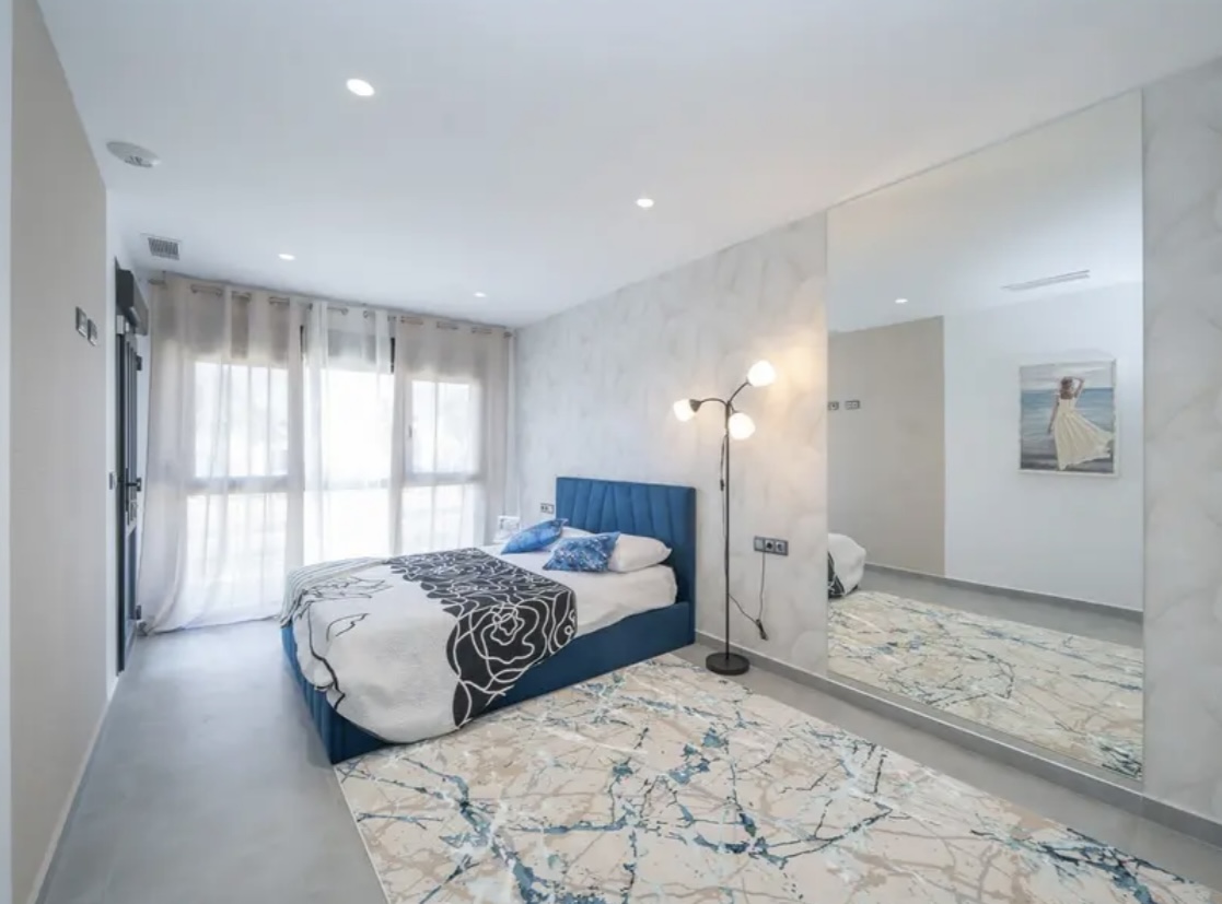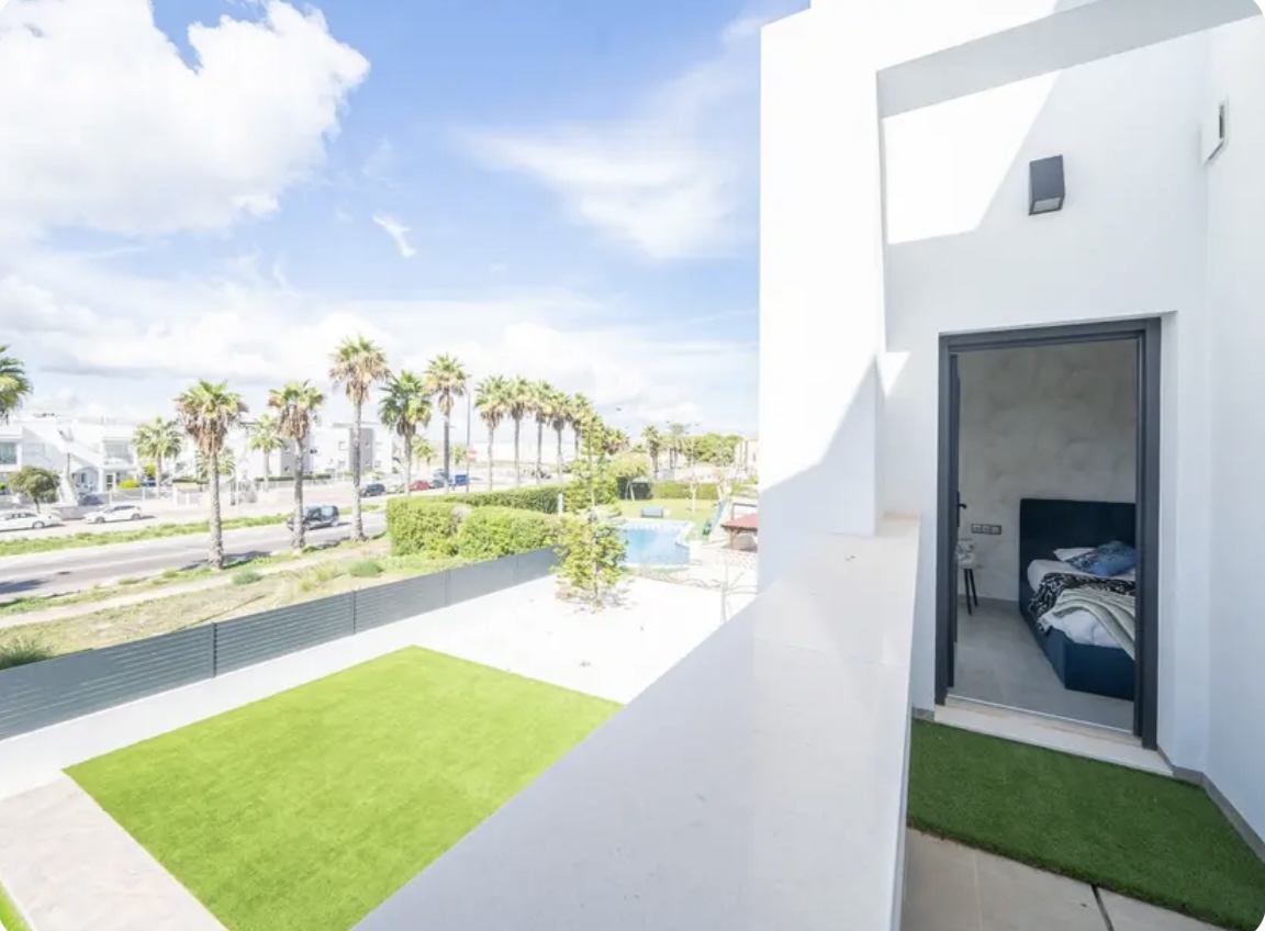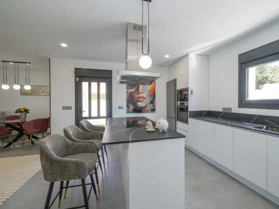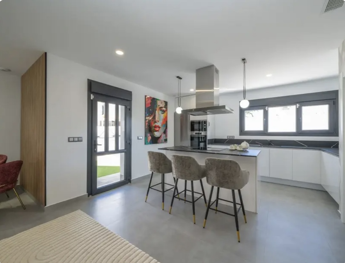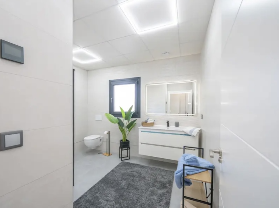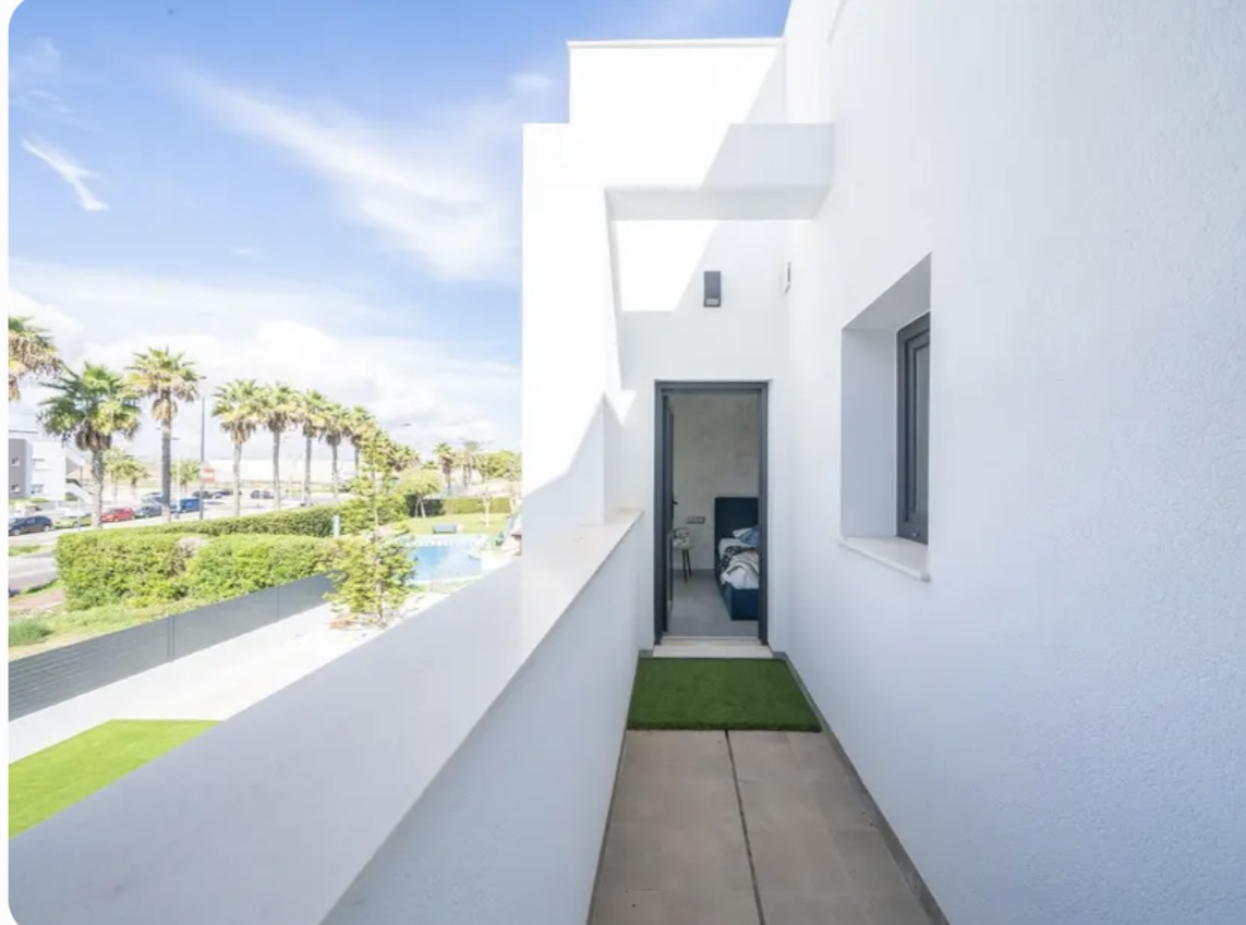 OPORTUNIDAD ÚNICA EN TORREVIEJA! Descubre esta exclusiva villa de obra nueva ubicada en Aguas Nuevas, una de las zonas más prestigiosas de Torrevieja. Totalmente independiente, la propiedad se asienta sobre una parcela de 850 m², y cuenta con piscina privada y amplio aparcamiento exterior en parcela para más de 8 vehículos. Con 368 m² construidos, esta impresionante villa ofrece 5 dormitorios dobles, 4 baños completos y 1 aseo, garantizando espacio y confort para toda la familia. Construida con materiales de alta gama, dispone de suelo radiante en ambas plantas y sistema de aire acondicionado por conductos de última generación. En la planta principal, encontrarás un amplio salón-comedor con cocina americana totalmente equipada, lavandería, aseo de cortesía y un dormitorio principal tipo suite, con baño completo que incluye ducha, bañera, gran vestidor y cama king size (2×2 m). La segunda planta ofrece otro salón adicional, cuatro dormitorios y dos baños completos, uno de ellos en suite. Desde esta planta se accede al balcón y al solárium de 120 m², que ofrece impresionantes vistas a la Laguna de las Salinas. La piscina privada, orientada al sureste, garantiza sol durante todo el día, creando el entorno perfecto para disfrutar al aire libre. La villa se vende completamente amueblada y equipada, lista para entrar a vivir.