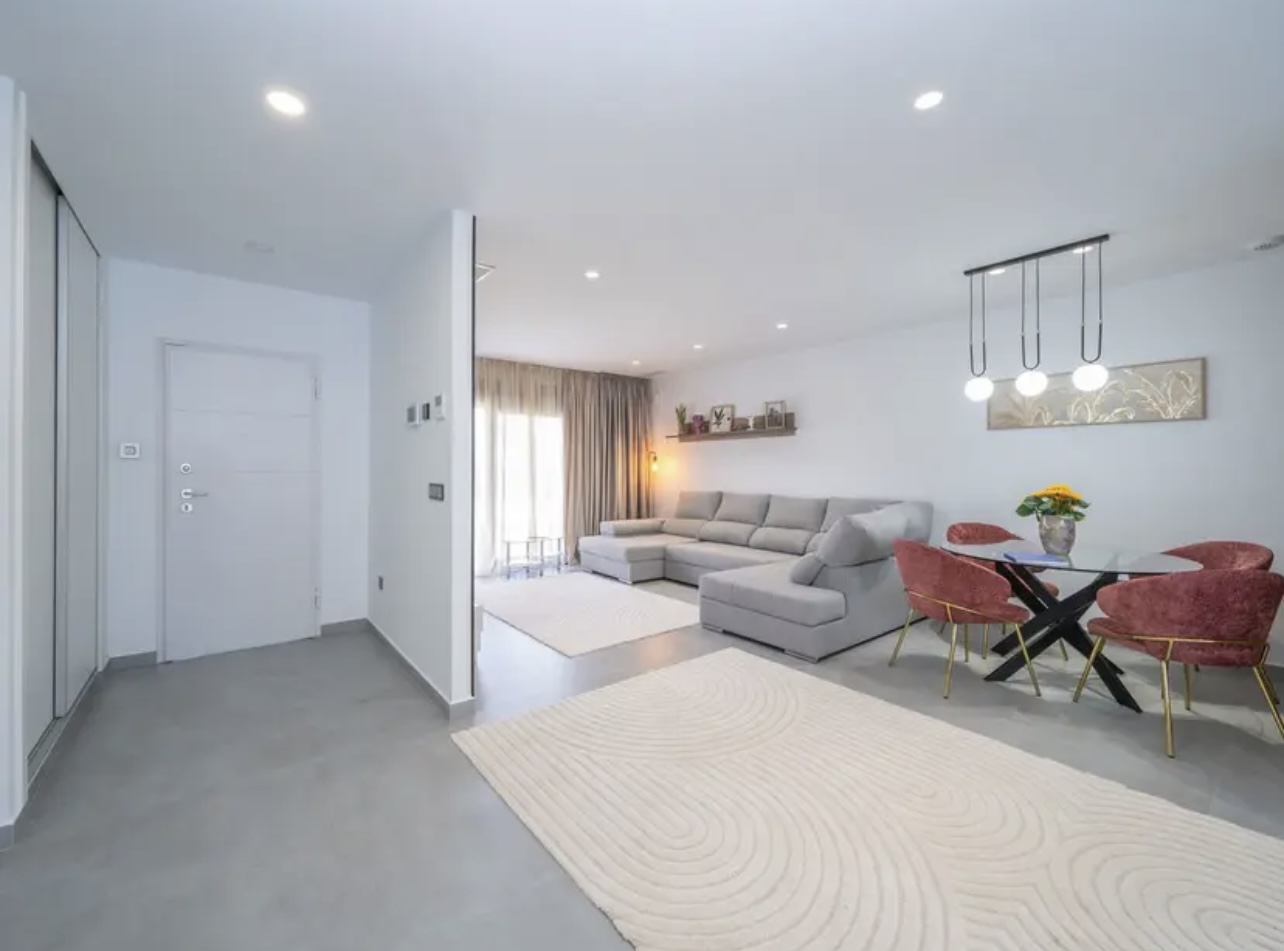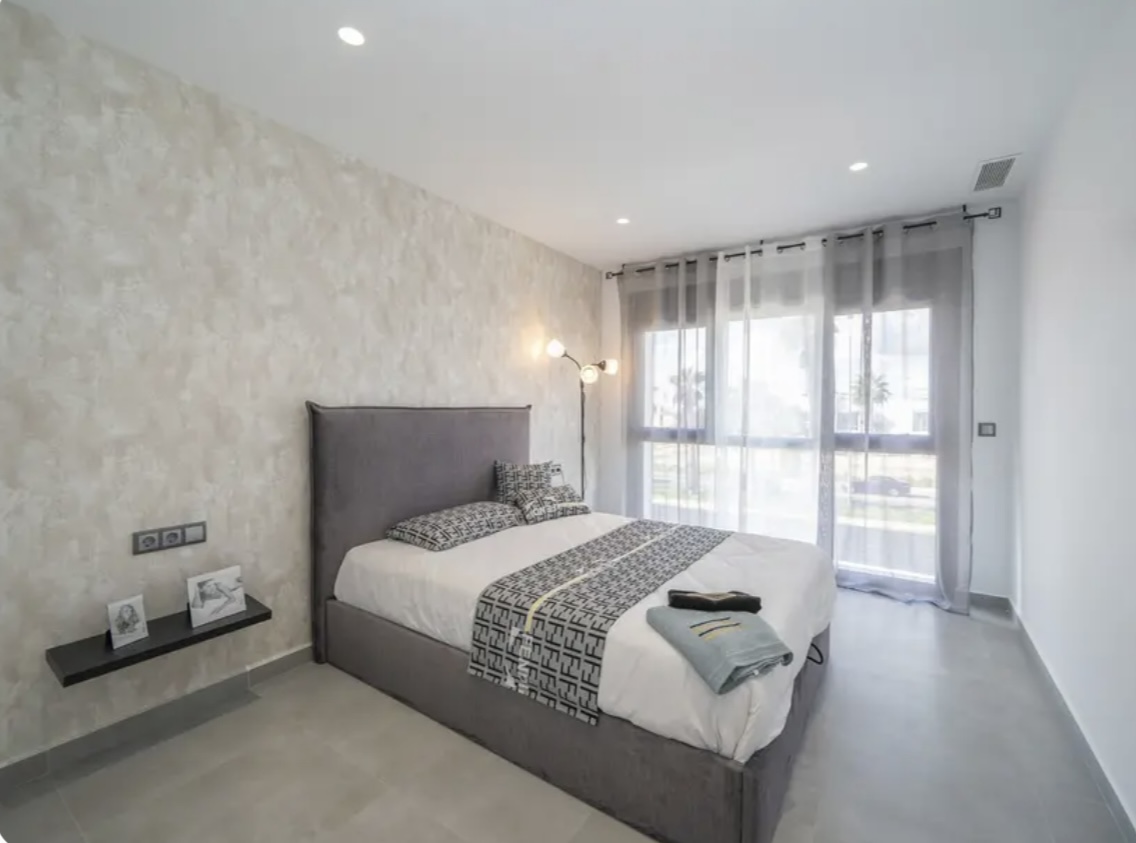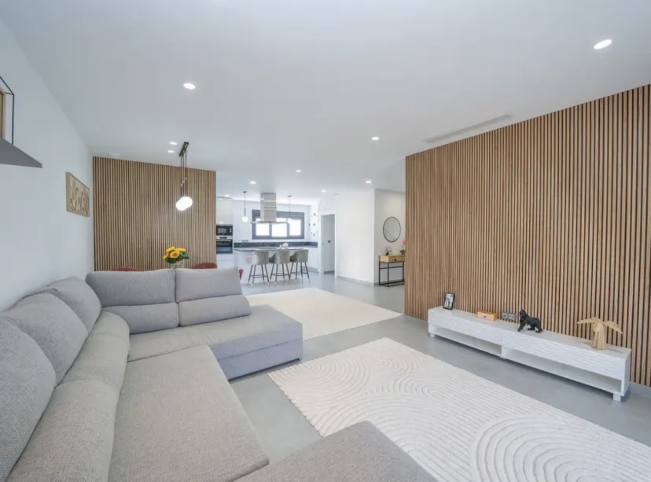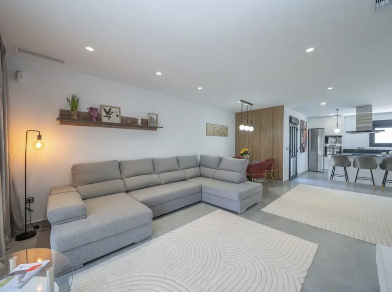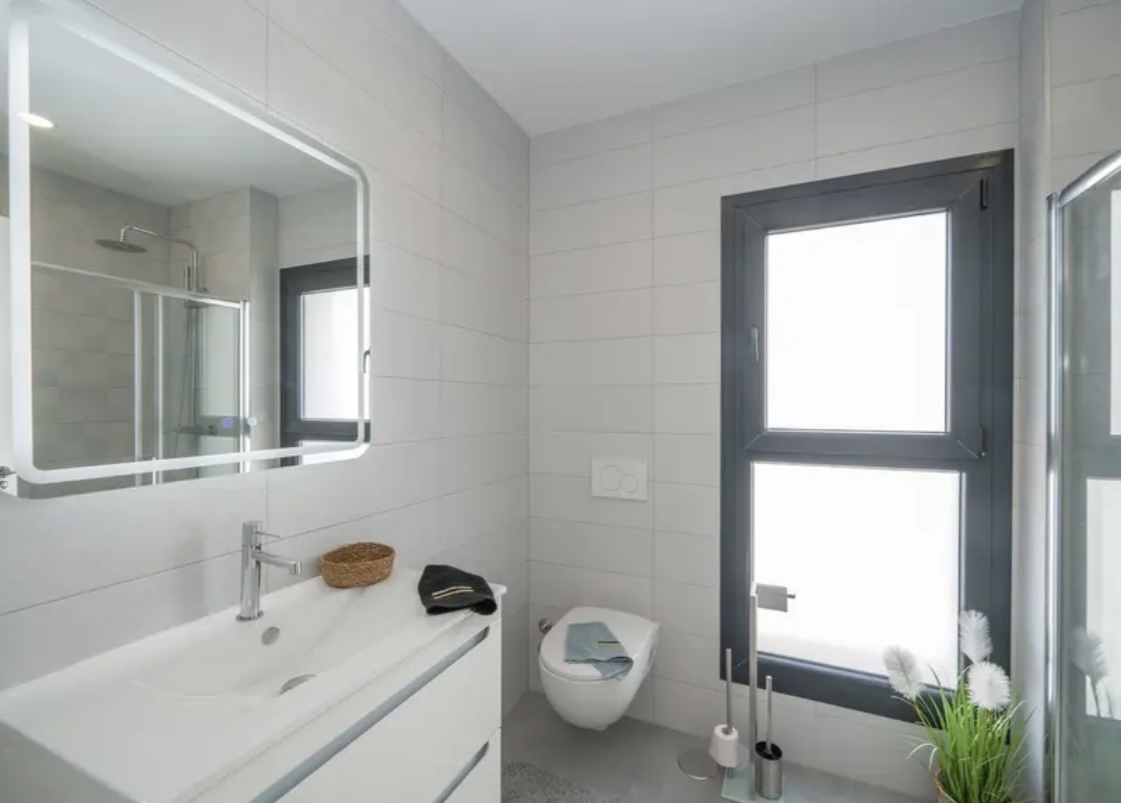 OPORTUNIDAD ÚNICA EN TORREVIEJA! Descubre esta exclusiva villa de obra nueva ubicada en Aguas Nuevas, una de las zonas más prestigiosas de Torrevieja. Totalmente independiente, la propiedad se asienta sobre una parcela de 850 m², y cuenta con piscina privada y amplio aparcamiento exterior en parcela para más de 8 vehículos. Con 368 m² construidos, esta impresionante villa ofrece 5 dormitorios dobles, 4 baños completos y 1 aseo, garantizando espacio y confort para toda la familia. Construida con materiales de alta gama, dispone de suelo radiante en ambas plantas y sistema de aire acondicionado por conductos de última generación. En la planta principal, encontrarás un amplio salón-comedor con cocina americana totalmente equipada, lavandería, aseo de cortesía y un dormitorio principal tipo suite, con baño completo que incluye ducha, bañera, gran vestidor y cama king size (2×2 m). La segunda planta ofrece otro salón adicional, cuatro dormitorios y dos baños completos, uno de ellos en suite. Desde esta planta se accede al balcón y al solárium de 120 m², que ofrece impresionantes vistas a la Laguna de las Salinas. La piscina privada, orientada al sureste, garantiza sol durante todo el día, creando el entorno perfecto para disfrutar al aire libre. La villa se vende completamente amueblada y equipada, lista para entrar a vivir.