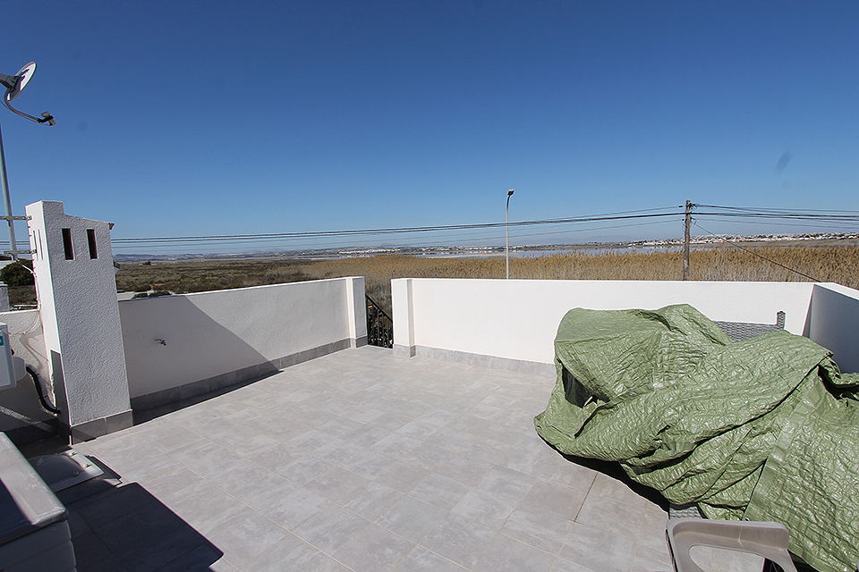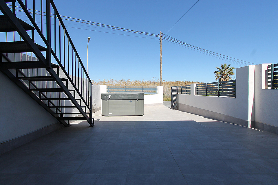 Bungalow con parcela de 140m2, dos dormitorios y un baño, con piscina-jacuzzi privada en el solarium.